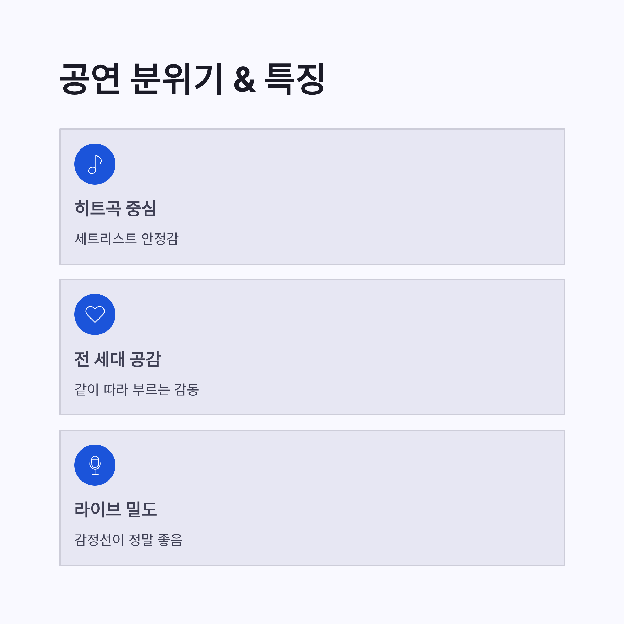 이번 2025 이문세 The Best 서울 공연은 히트곡 중심이라 세트리스트 안정감이 컸어요. 전 세대가 같이 따라 부를 수 있는 분위기라 괜히 마음이 말랑해지더라구요. 장점은 몰입감, 단점은 후반부 체력 소모? ㅎㅎ 최신 트렌드처럼 화려한 연출은 아니지만, 대신 라이브의 밀도와 감정선이 정말 좋았어요. 부모님 모시고 오신 분들도 많았고, 실제로 연말 선물용으로 딱이라는 생각이 들었습니다.