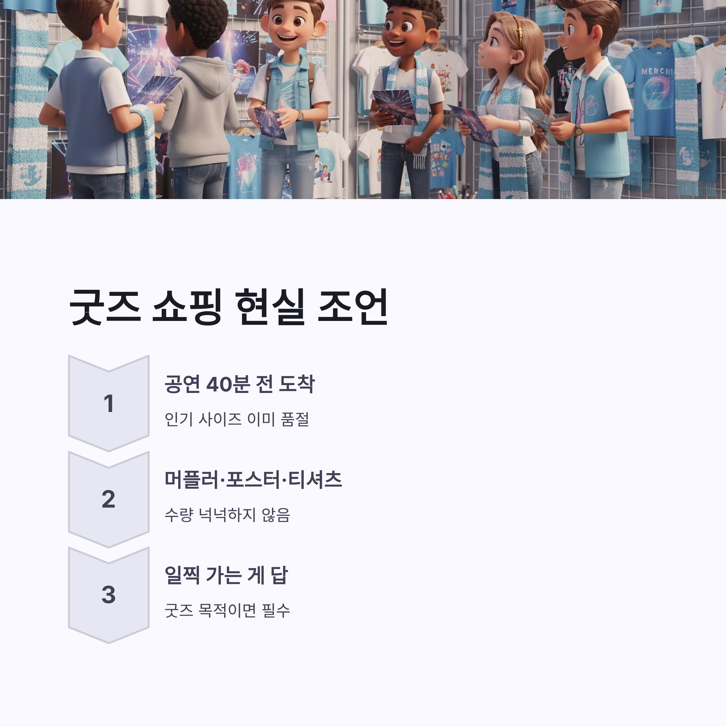 | 굿즈 구매 | 공연 시작 전 | 사이즈 품절 빠름 |