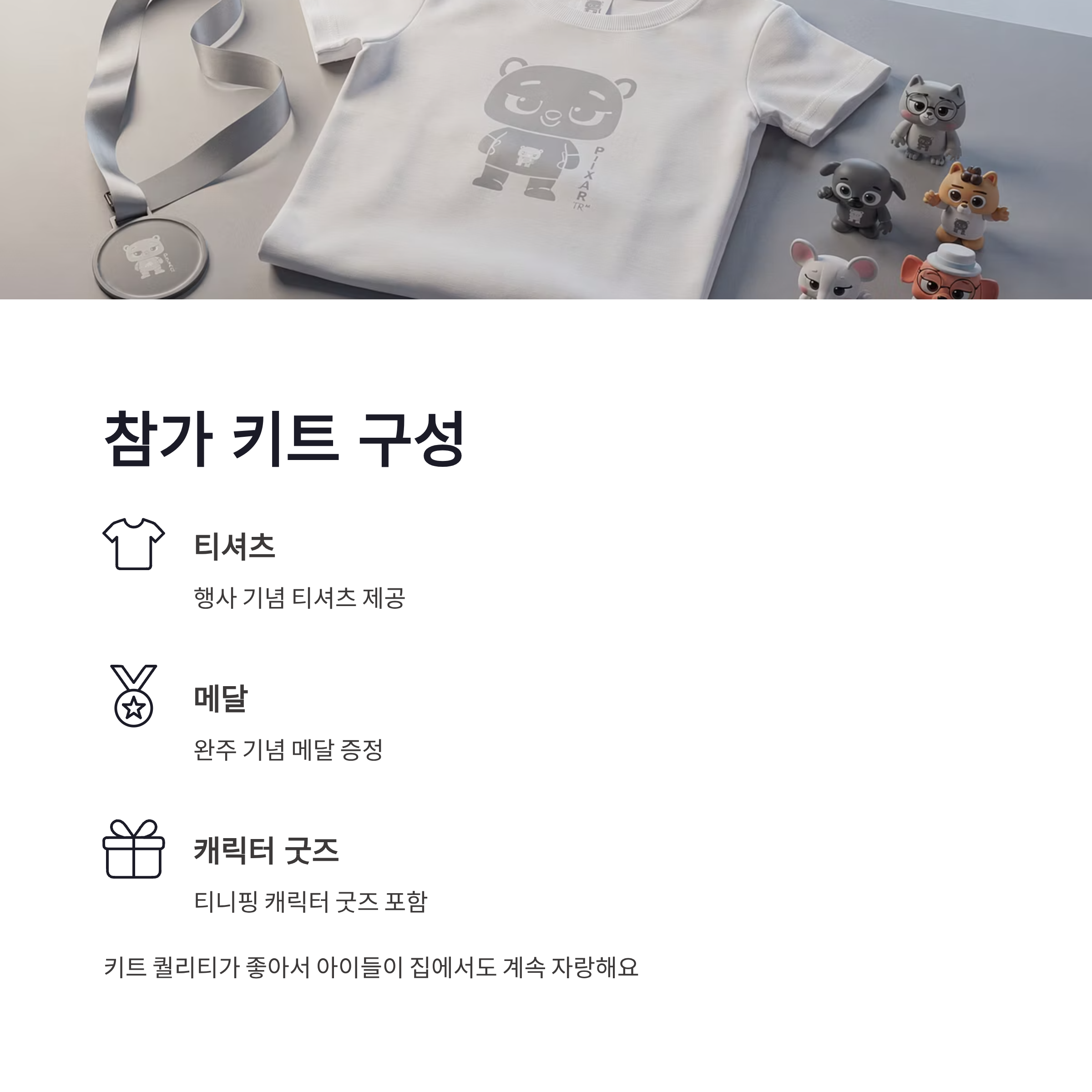 저는 작년 비슷한 행사 갔을 때, 키트 퀄리티가 생각보다 좋아서 만족했어요. 티셔츠, 메달, 캐릭터 굿즈까지 챙겨주니 아이가 집에 와서도 계속 자랑하더라구요 ㅋㅋ 2026 휠라 키즈 티니핑런도 구성은 비슷할 걸로 보입니다.