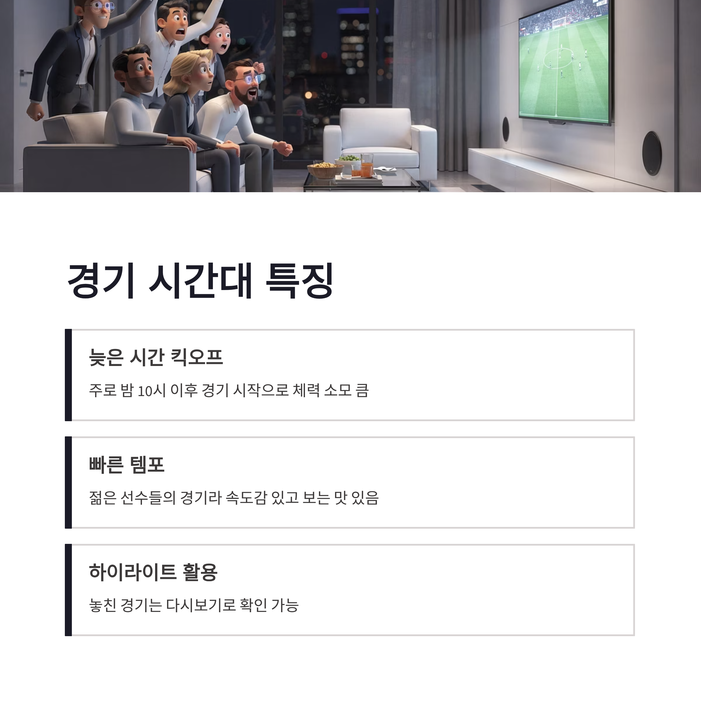 | 한국 경기 시간 | 밤 10시 이후 ~ 새벽 |