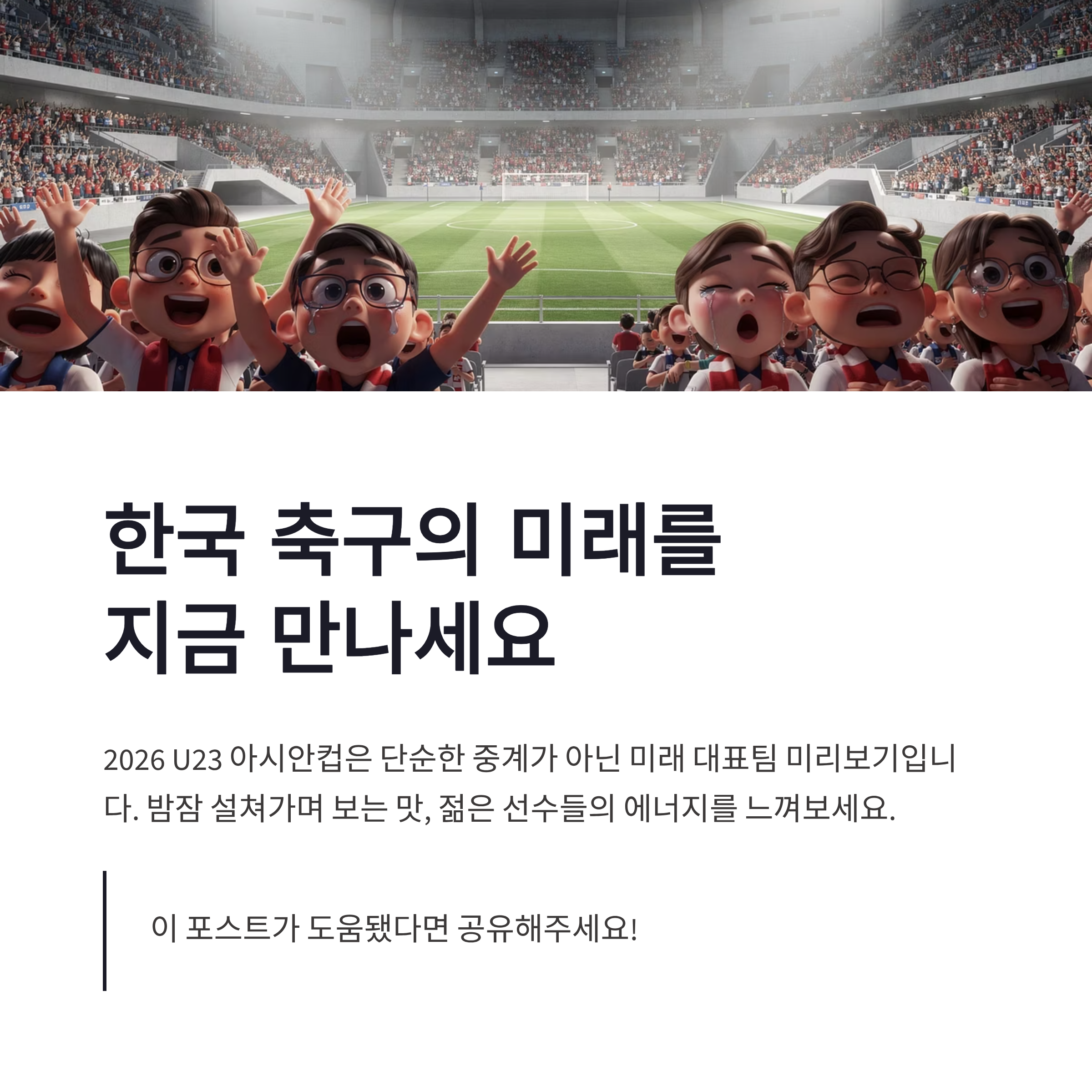 #2026U23아시안컵 #U23아시안컵중계 #한국축구중계 #U23한국대표팀 #아시안컵축구 #축구중계방송 #국가대표축구 #사우디아라비아아시안컵 #U23축구 #한국축구일정 #축구팬필수 #아시안컵일정 #축구새벽경기 #대표팀유망주 #한국축구미래