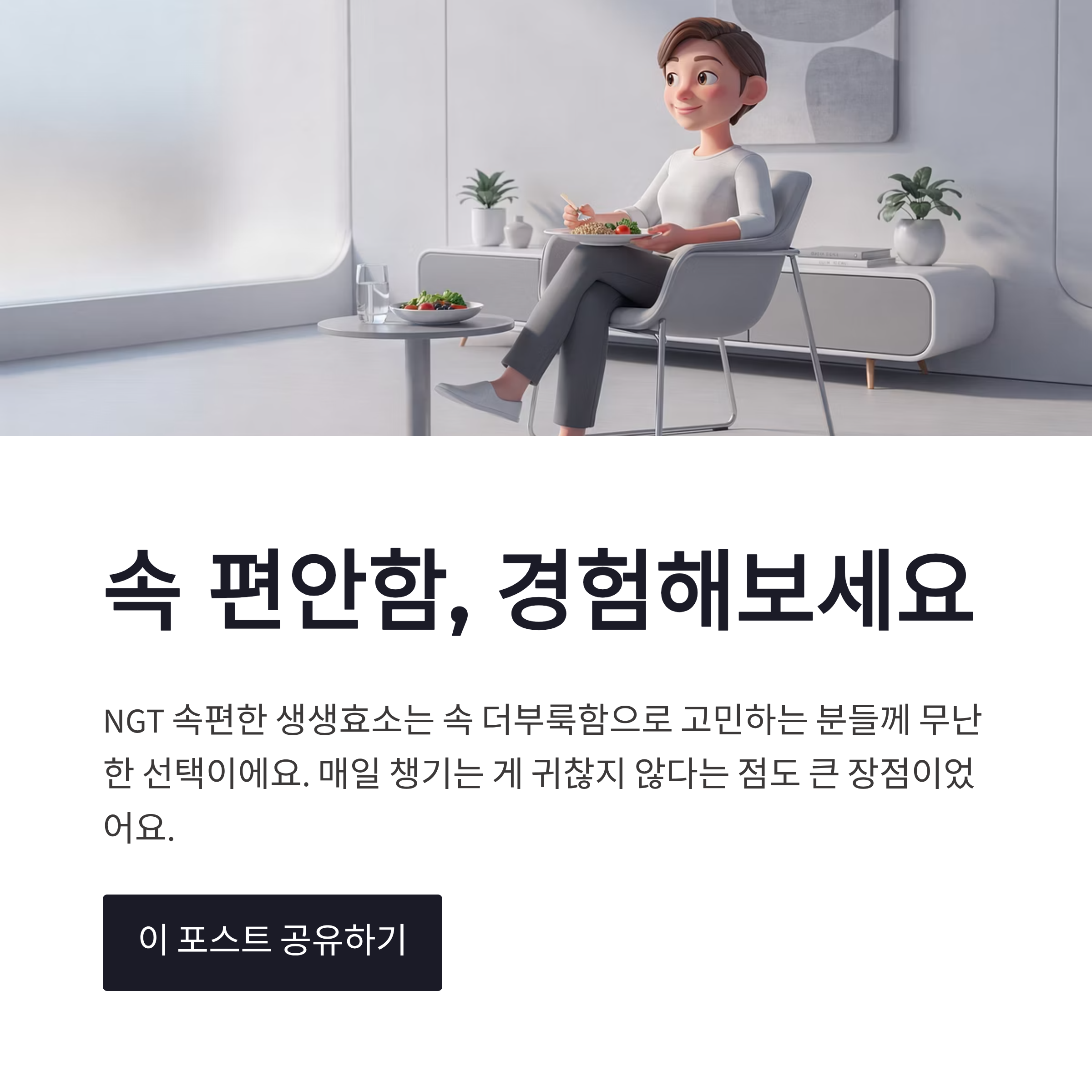 제가 느낀 포인트는, 과식한 날이나 기름진 음식 먹은 날에 NGT 속편한 생생효소를 챙기면 속이 덜 답답하다는 점이었어요. 물론 개인차는 있겠지만, 최소한 불편함이 오래 안 가는 느낌은 확실했슴다.